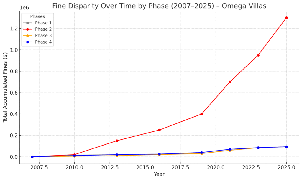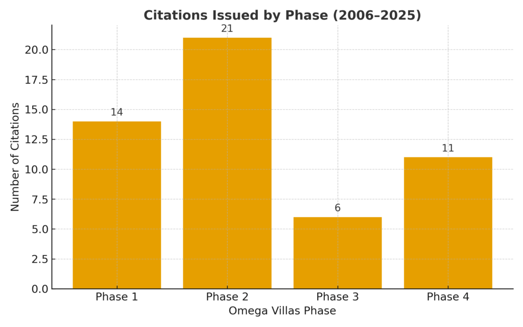 📊 Narrative Chart Comparison: Enforcement History Across Omega Villas (2006–2025)