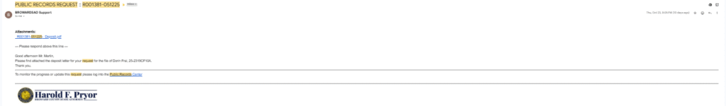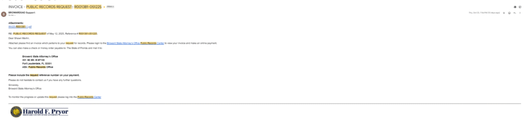 October 16, 2025 — State Attorney’s Office (Broward SAO) – Public-Records Request #R001381-051225