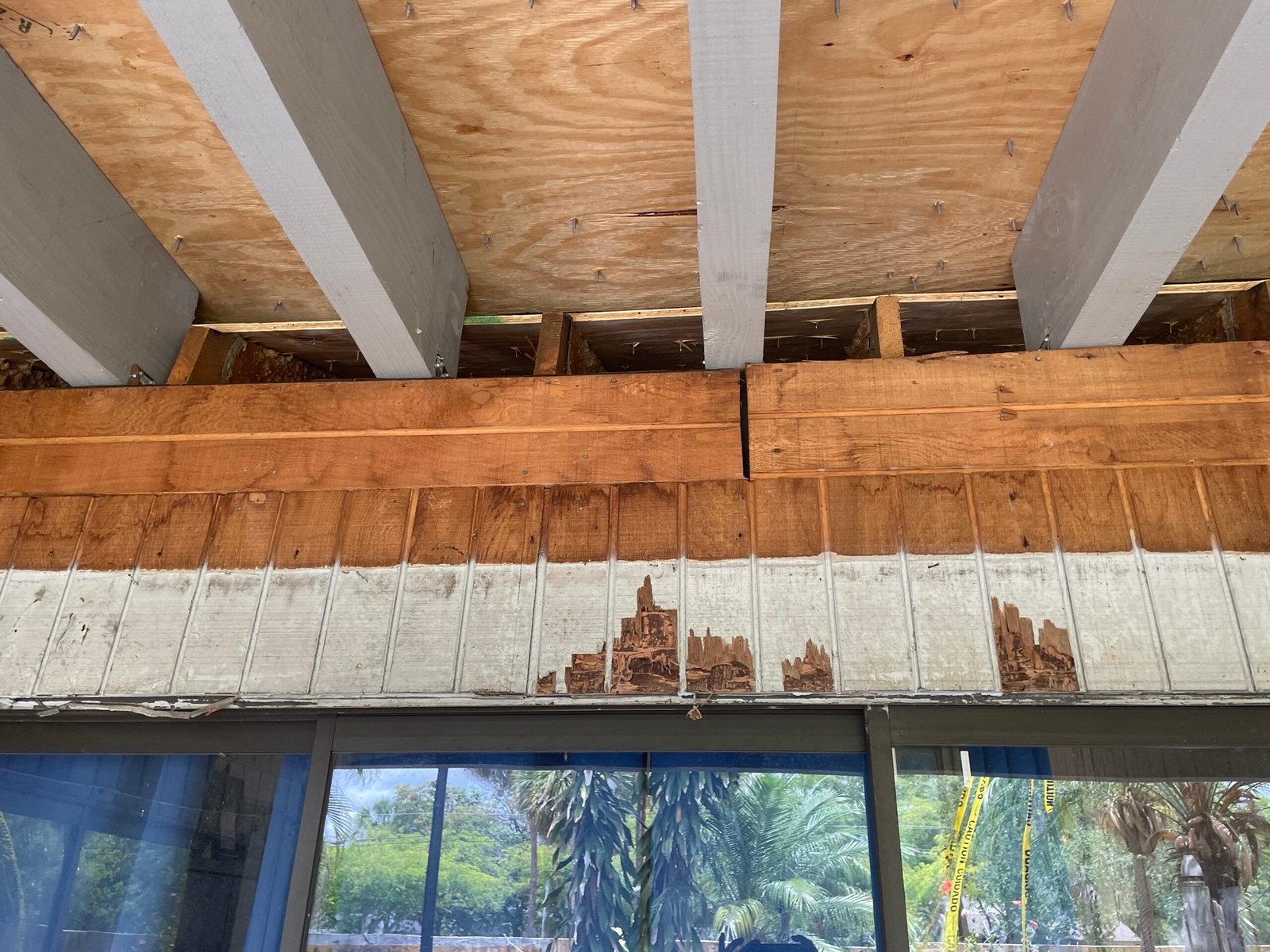 | Fascia boards to be replaced with new code-compliant material. | Damaged/rotted fascia boards concealed with wood filler instead of replacement. | Shortcut repair; potential fraudulent substitution of materials. |