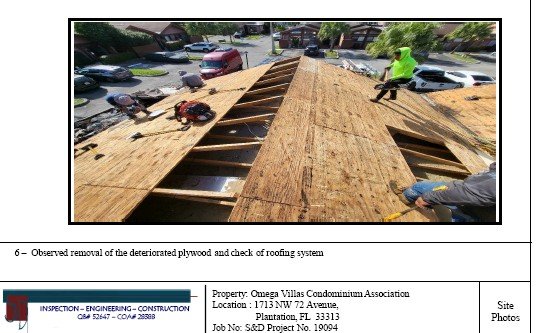- Attached as Q6 Links are photographic and video evidence showing that insulation was not reinstalled in multiple pitched roof units (e.g., Units #48, #49). Florida Building Code requires that insulation be restored or replaced when roof assemblies are opened. Austro’s omission is, in my opinion, both a code violation and an intentional cost-cutting measure at the expense of owners.