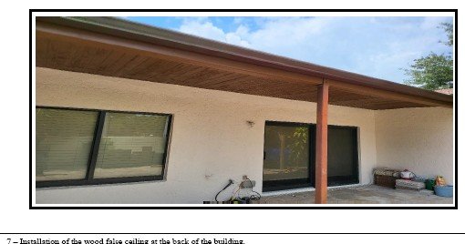 - Q7 Attachments – Photo Evidence of Installed False Ceilings (Phases 4 Patio Areas) Link1, Link2, Link3, Link4 & Link5