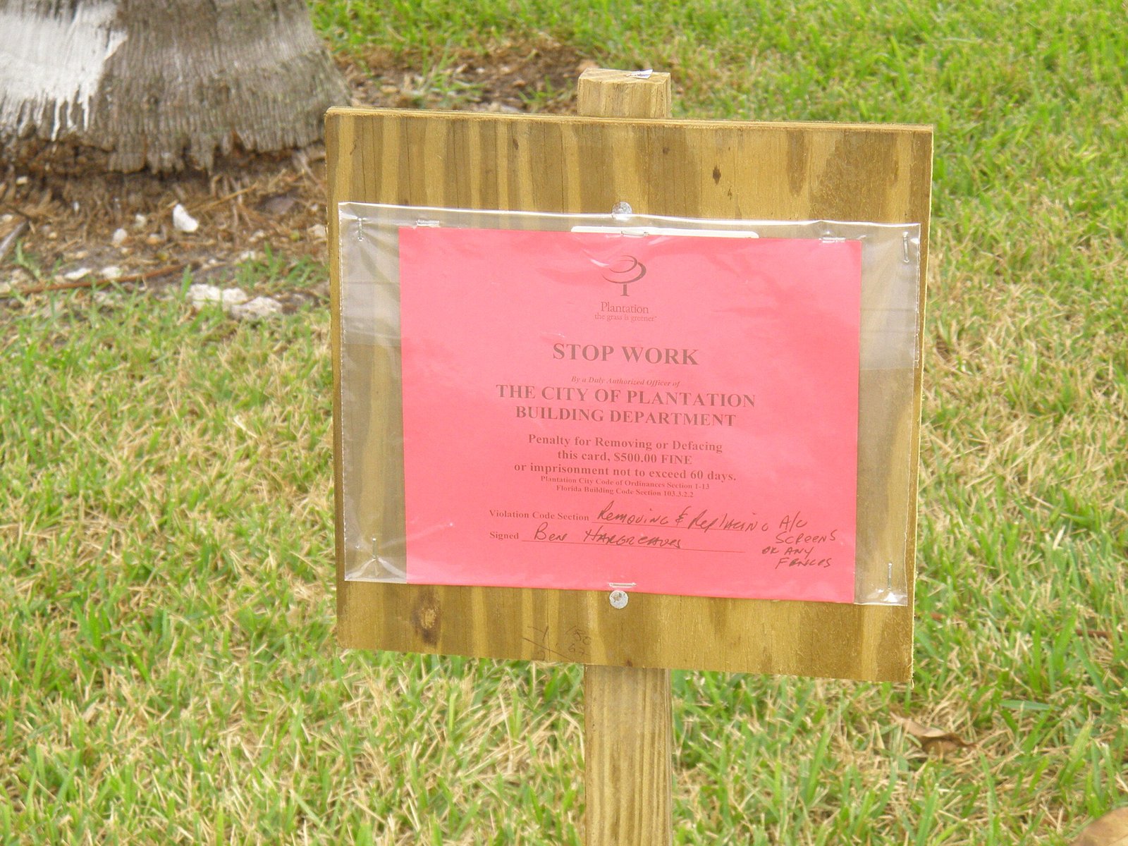 - City of Plantation Citation CE08-03180 (Oct 1 2008)